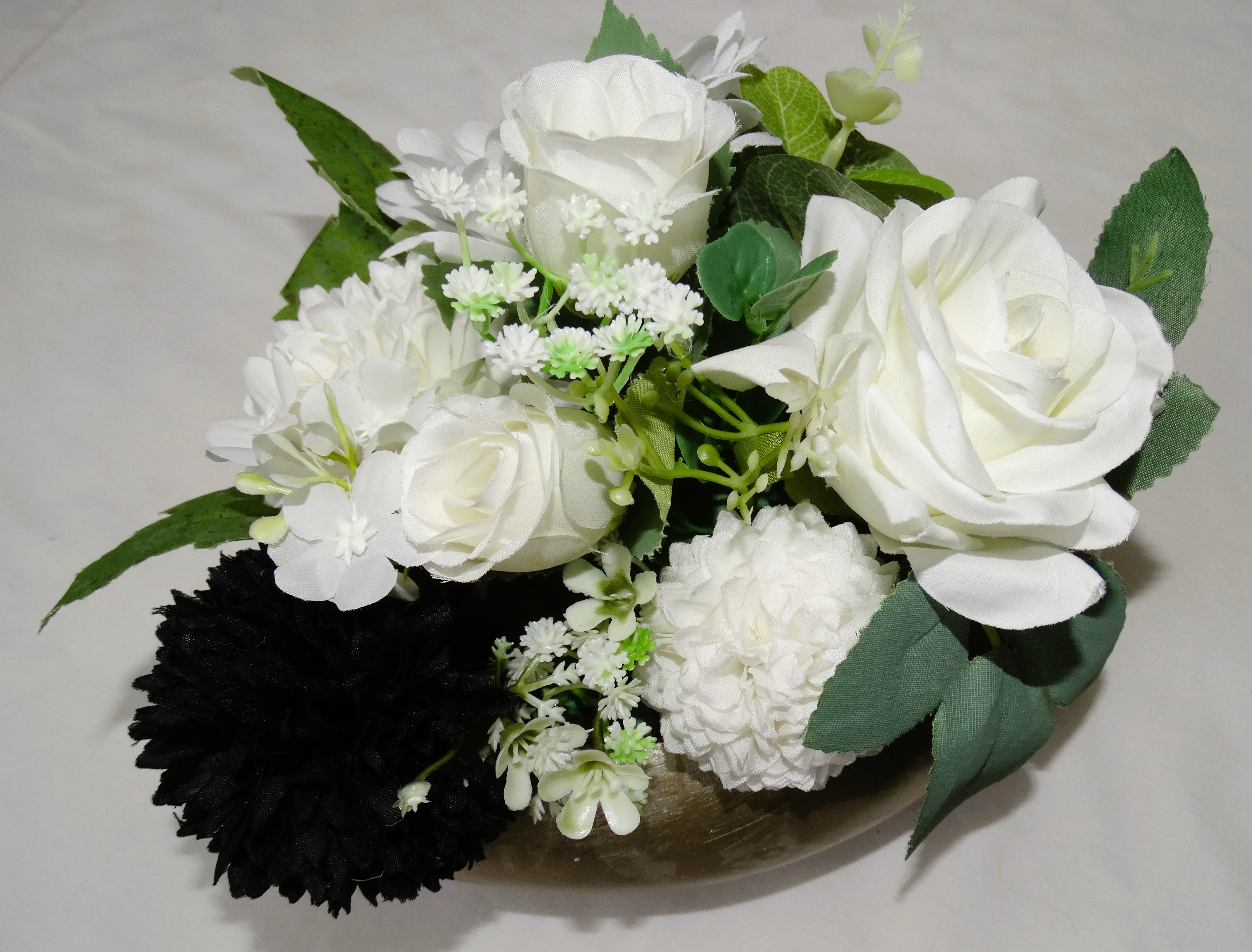 je vous propose également mes créations réalisées avec de jolies fleurs artificielles et éclatantes de couleurs